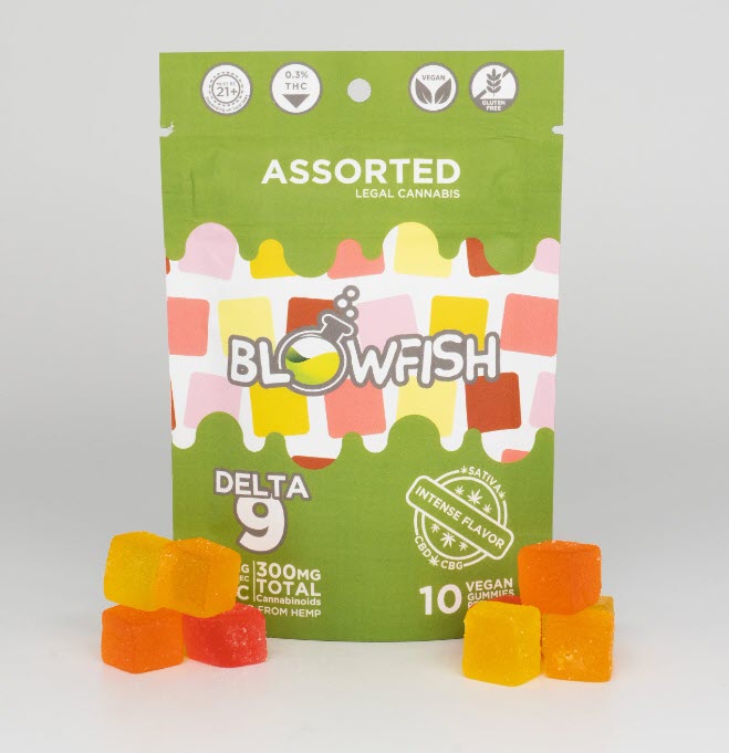 Here at Blowfish we are known for our flavorful melt in your mouth gummies. All Blowfish gummies are proudly made in the USA, vegan, gluten free, and tobacco free. Please Note: Our gummies have been reported by consumers to have effects that may last 6 to 12 hours after consumption. Derived from Full Spectrum Hemp Extract and in compliance with H.R.2 - Agriculture Improvement Act of 2018. Our gummy bags are child-resistant, resealable zipper-style bag for ongoing freshness. Each gummy contains 5mg of hemp-derived Delta 9 THC.