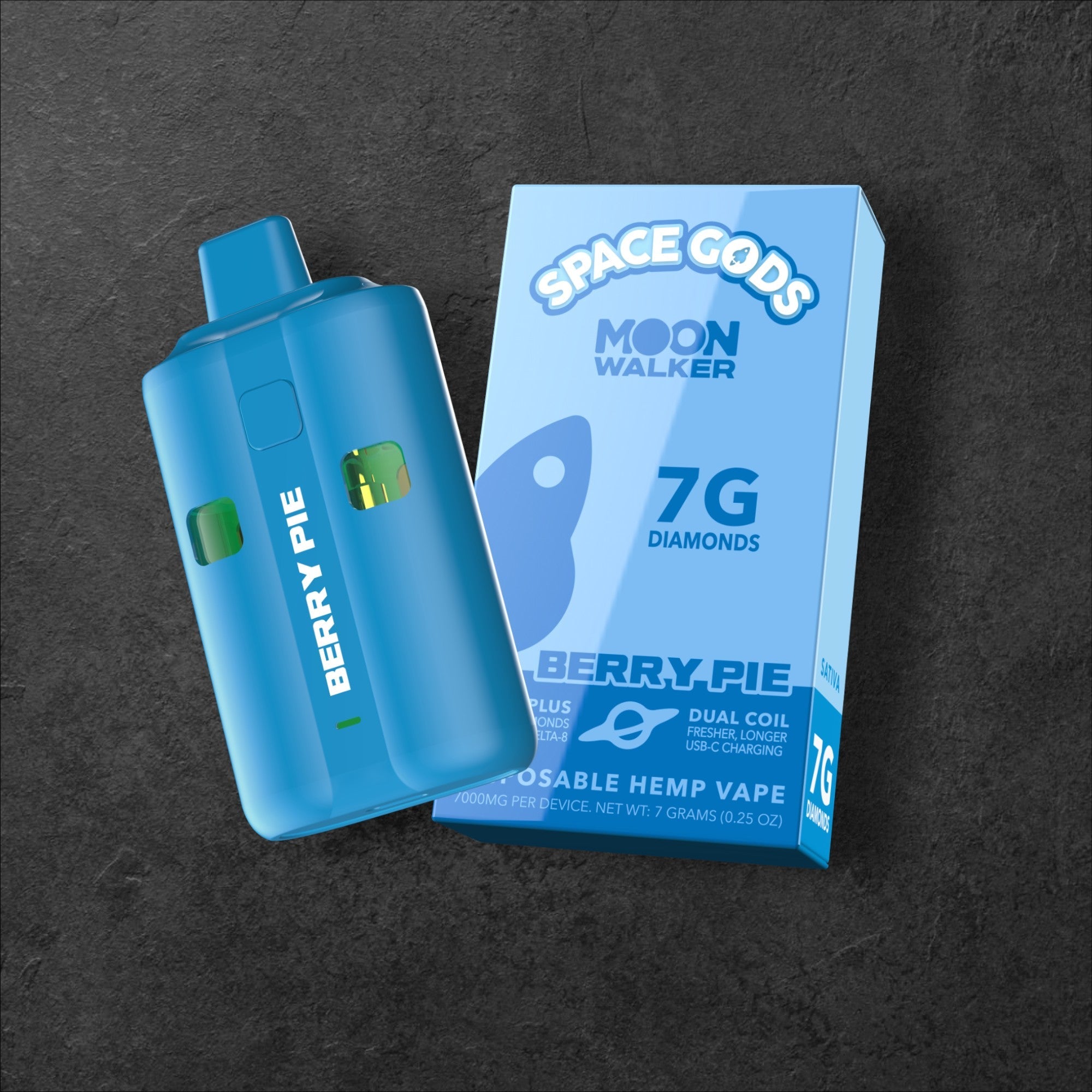 Meet the Space Gods Moon Walker Disposable, a top-tier vaping device designed to elevate the experience. This disposable vape is packed with 7 grams of premium product, providing extended use without the hassle of constant replacements. It combines cutting-edge technology with a powerful blend of cannabinoids to deliver a smooth, satisfying, and versatile vaping experience. Experience a powerful and unique blend of THC-A Plus Liquid Diamonds, THC-P, and Delta-8. This combination provides a balanced and potent effect, catering to a wide range of preferences. Whether seeking relaxation, creativity, or a balanced high, the Moon Walker delivers a satisfying experience. The USB-C charging feature ensures quick and efficient power-up, reducing downtime and keeping the device ready for use. This modern charging method is both convenient and reliable, allowing for uninterrupted vaping sessions. Dual coil technology ensures each puff is smooth and full of flavor. This advanced feature provides a consistent and enjoyable hit, enhancing the overall vaping experience. Expect richer and more satisfying flavors with every use.