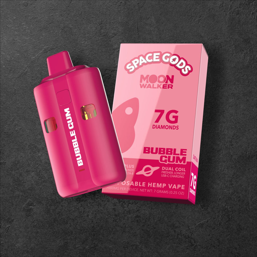 Meet the Space Gods Moon Walker Disposable, a top-tier vaping device designed to elevate the experience. This disposable vape is packed with 7 grams of premium product, providing extended use without the hassle of constant replacements. It combines cutting-edge technology with a powerful blend of cannabinoids to deliver a smooth, satisfying, and versatile vaping experience. Experience a powerful and unique blend of THC-A Plus Liquid Diamonds, THC-P, and Delta-8. This combination provides a balanced and potent effect, catering to a wide range of preferences. Whether seeking relaxation, creativity, or a balanced high, the Moon Walker delivers a satisfying experience. The USB-C charging feature ensures quick and efficient power-up, reducing downtime and keeping the device ready for use. This modern charging method is both convenient and reliable, allowing for uninterrupted vaping sessions. Dual coil technology ensures each puff is smooth and full of flavor. This advanced feature provides a consistent and enjoyable hit, enhancing the overall vaping experience. Expect richer and more satisfying flavors with every use.Space Gods Moon Walker Disposable Strains